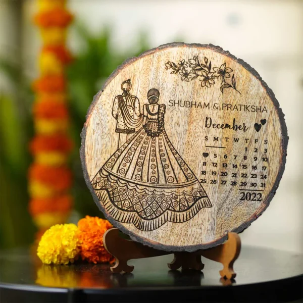 Engraved Wooden Plaque For North Indian Couples | Customized Wedding Gift